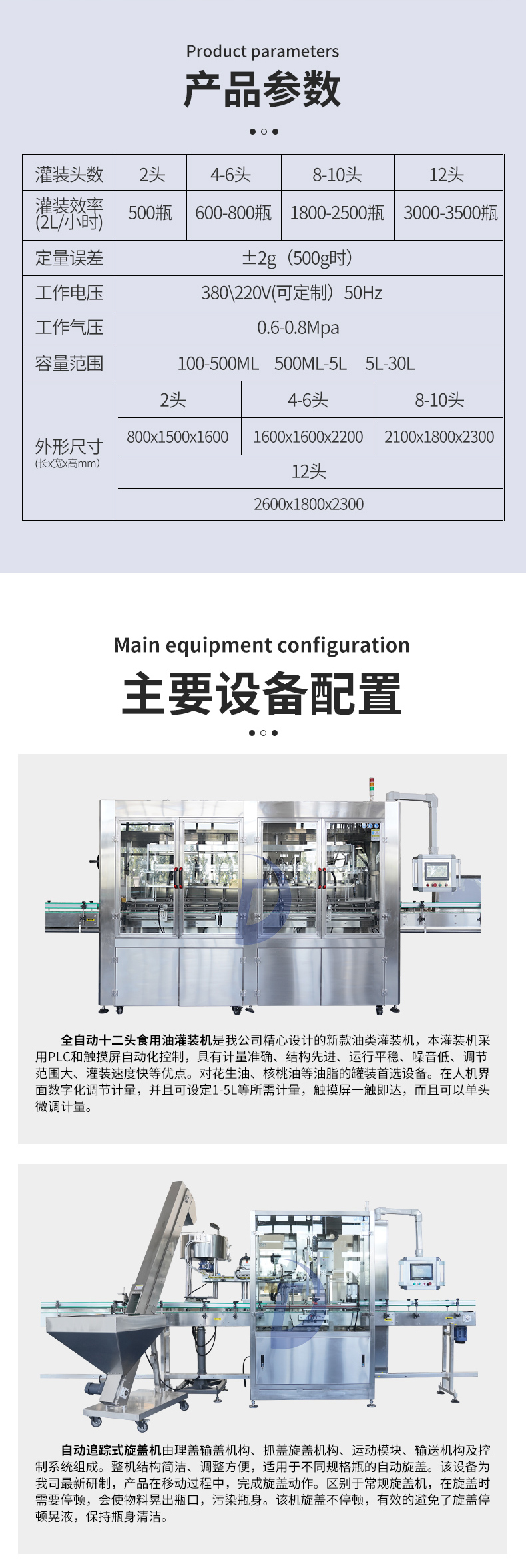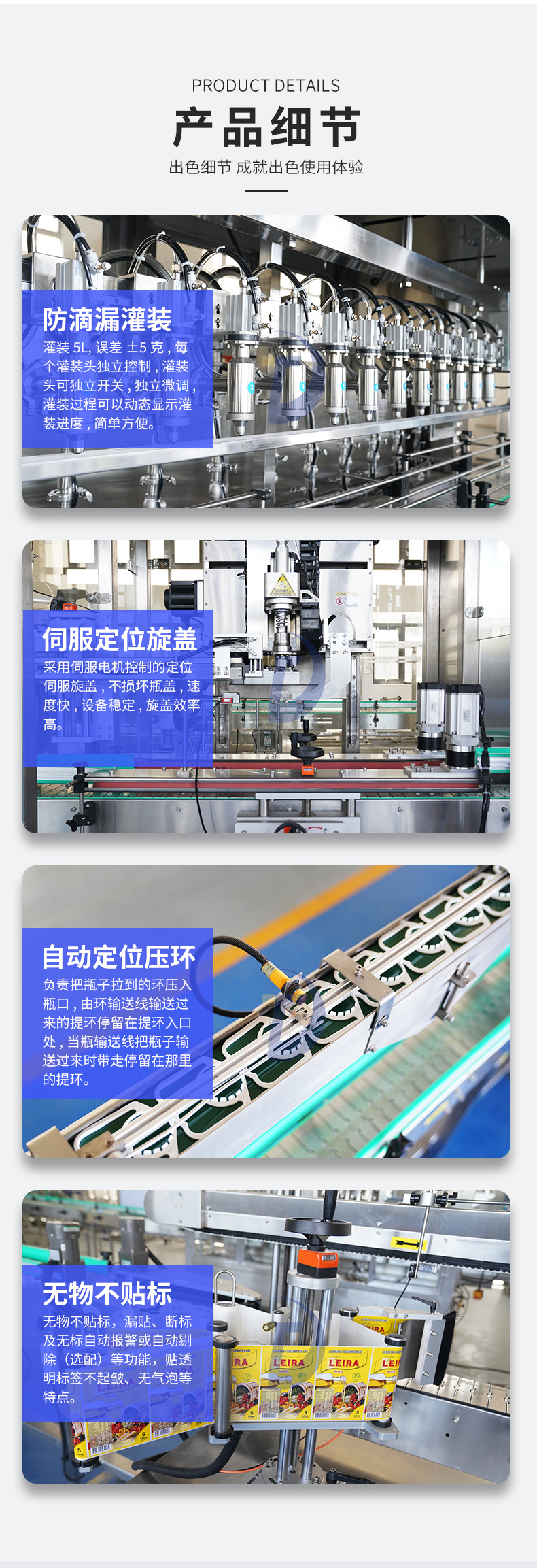 當(dāng)油桶移動到灌裝頭下方時,灌裝頭會自動啟動,開始進行自動灌裝。在這個過程中,灌裝頭會感應(yīng)油桶的存在,并根據(jù)設(shè)定好的參數(shù)自動進行灌裝。當(dāng)油桶已經(jīng)達到預(yù)定容量后,灌裝頭會自動關(guān)閉,停止灌裝。
